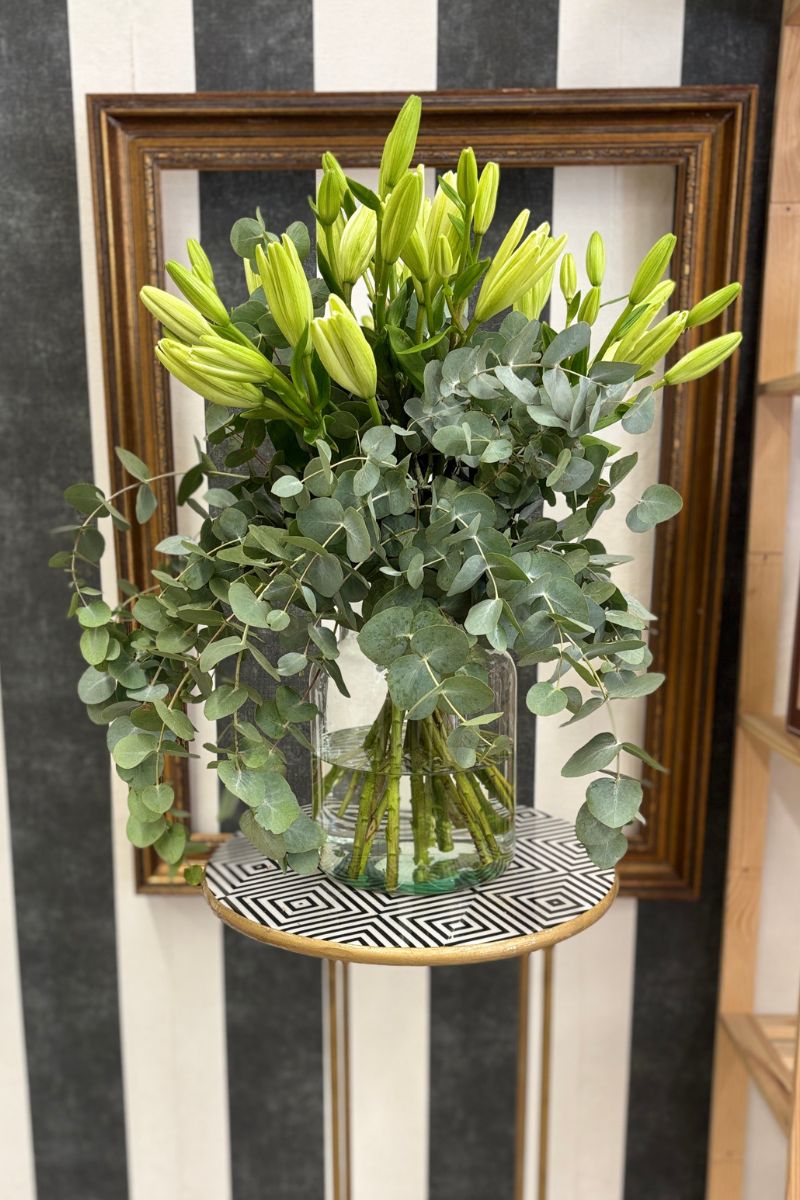 Todo un clásico, regalar flores frescas. Nuestro Ramo Bora Bora está compuesto por tallos de eucalipto/ruscus y lilium. Puedes escoger el tamaño del ramo, decidiendo cuántos tallos lo van a componer. Regala flores con un toque de frescura y haz que su día inolvidable.. Regala flores con un toque de estilo y haz que su día sea inolvidable. Es un detalle que le encantará y que además puedes personalizar.